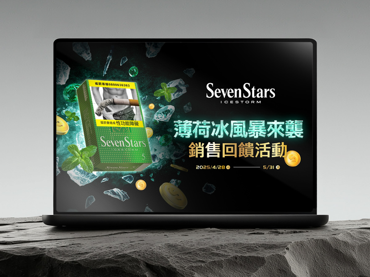 MX 協助傑太日煙(Japan Tobacco International, JTI)旗下 Seven Stars(黑七星)品牌進行新品上市整體視覺與通路溝通設計。服務內容包含新品上市 KV 主視覺設計、通路視覺文宣製作及文案策略發想。